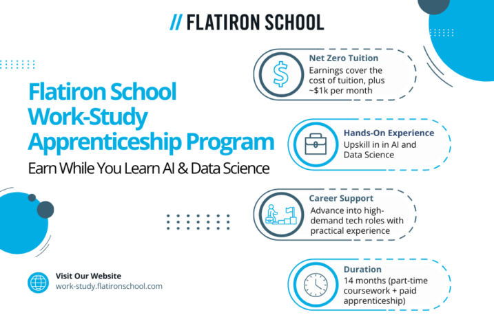 Take your career further, learn from top industry mentors, and step confidently into the world of AI, Data Science, and technology, all while getting paid to do it. With Flatiron School’s Work-Study Apprenticeships, your future in tech starts now.