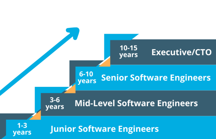 Junior engineers can progress onto a mid-level software engineering role after about 3-4 years working in a junior-level software engineer position.